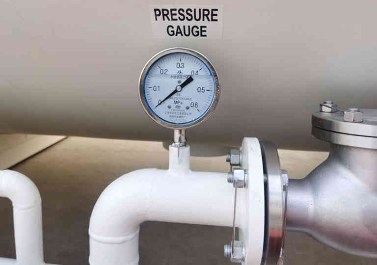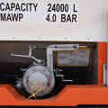 The Pressure Gauge displays the internal pressure of the tank. To discharge, pressure is raised to 1.5 Bar. As the contents unload, the pressure drops slowly to indicate the reducing volume. When the level is at .2 Bar, the tank is considered empty.