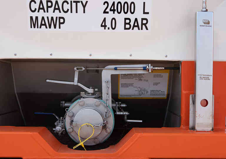 The in-built Thermometer indicates the temperature of the internal walls. For a more precise reading on the cargo temperature, a well is located near the discharge valve where the operator can attach another thermometer that interacts directly with the cargo.