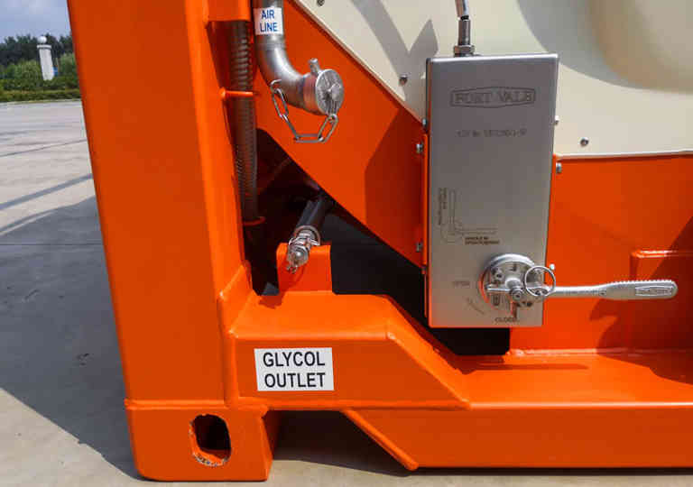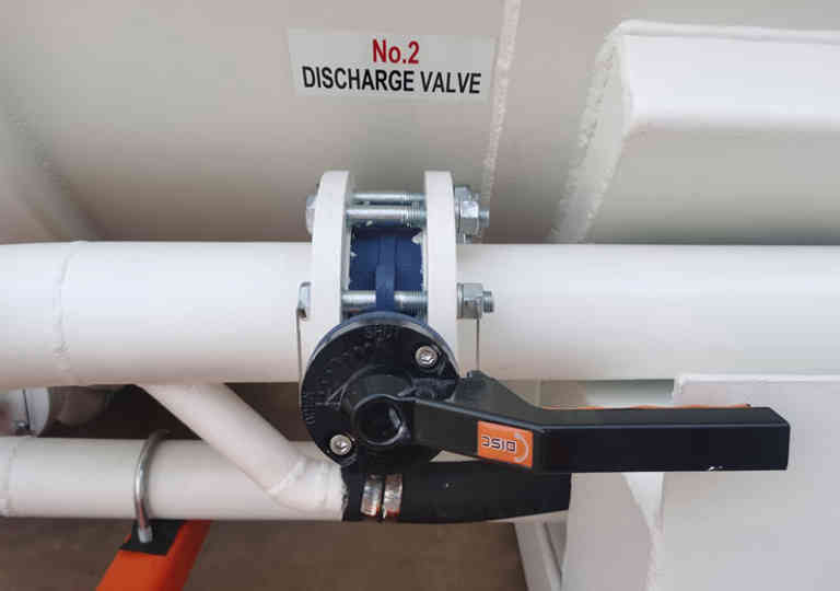 Cargo is discharged by shifting the main lever into the Open position. The Glycol Outlet enables the operator to distribute a heating or cooling agent between the tank walls to help maintain cargo temperature. The Air Line is used to equalise pressure stop the chance of a tank implosion.