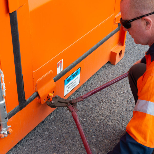 This is the most common method. We tilt the truck’s tray, then slide the container off while the vehicle slowly moves forward. Just note that the container’s height will increase when it’s tilted – so if your site has overhead obstacles (like power lines) we may need to go with another method.