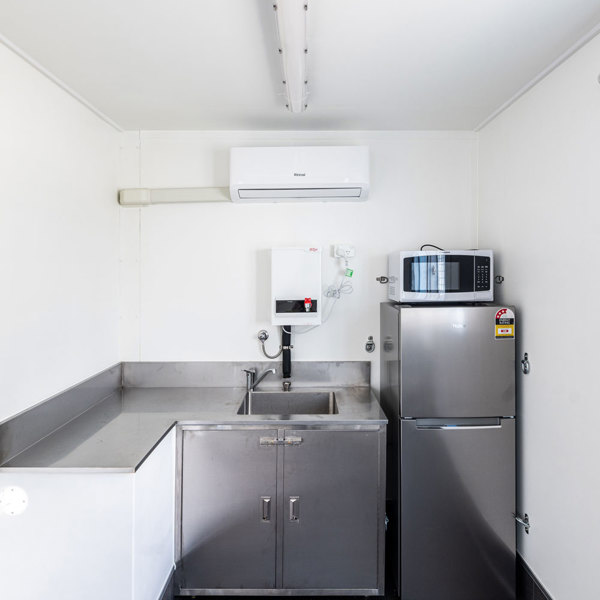 SCF 40ft Site Sheds are installed with Rockwool insulation, split system reverse cycle air conditioning, hot and cold water, sink, stainless steel kitchenette bench and energy efficient internal lighting. There are also provisions for an optional microwave and refrigerator, which can be installed in depot prior to delivery. A team who can eat in comfort and refuel will get more work done with less mistakes.
