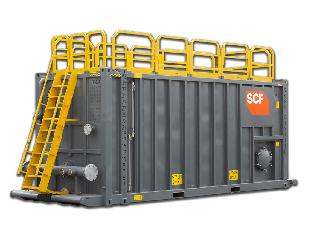 Need to manage water treatment on site? That's easy - SCF's 40ft Flowback Tank is built as an open top tank with a fold down gantry system, so operators can safely access the top of the tank and the central weir to treat water, making your water treatment process safe and efficient.